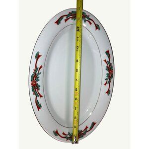 Fair Field Fine China Oval Platter Wit Festive Red & Green Holiday Design Vintag