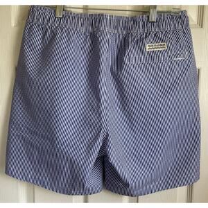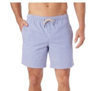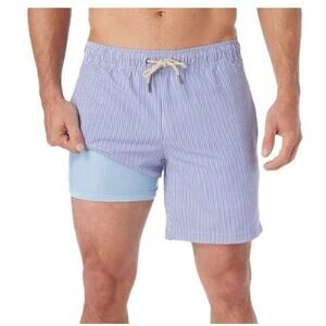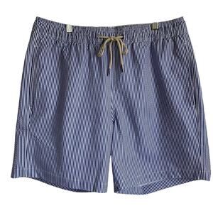 Fair Harbor Bayberry Swim Trunks Shorts Lt. Blue Seersucker Stretch Lined Sz L