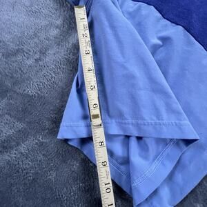 Stylish two-tone blue swim trunks. Comfortable fit. Perfect for beach days.