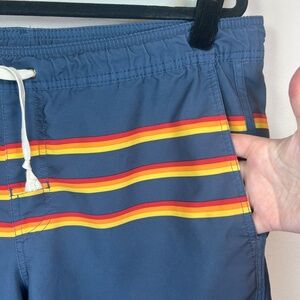 Fair Harbor Men's Anchor Swim Shorts Blue Rainbow 3 Stripes Lined Pockets Medium