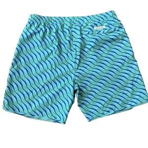 Fair Harbor Men’s Swim Trunks Shorts Blue Green Wave Print Lined Size XL NWOT