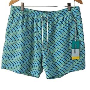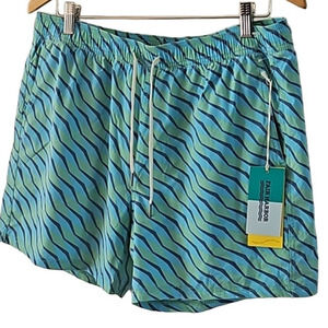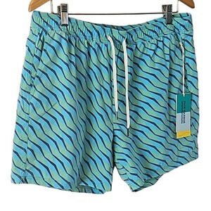 Fair Harbor Men’s Swim Trunks Shorts Blue Green Wave Print Size 2XL