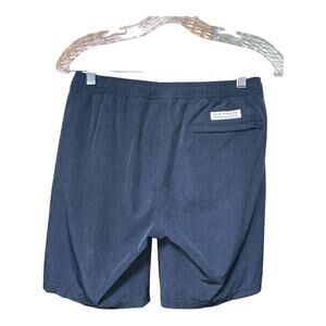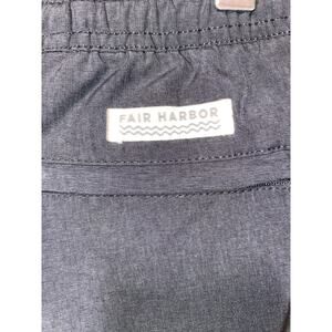 The Fair Harbor Shorts in medium size are a stylish and comfortable option for casual or travel occasions. Made from a blend of polyester, spandex, and cotton, these solid blue shorts feature a drawstring closure and a mid-rise fit. The knit fabric wash is medium, with a flat front design accented by the brand's logo. With lined pockets for added convenience, these shorts are perfect for the warmer seasons of summer, fall, and spring. Easy to care for as they are machine washable, these shorts offer both practicality and a fashionable look for men.