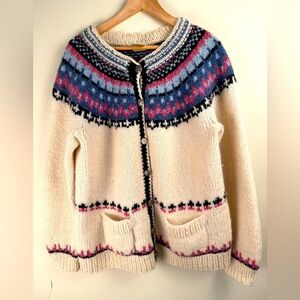 Fair Isle Handknitted New Wool Cardigan Made In Denmark Stofos