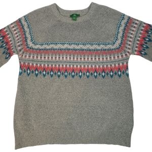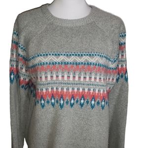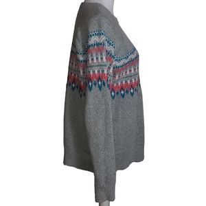 Fair Isle Knit Wool Alpaca Blend Crewneck Sweater Size XL Gray Pink Blue Preppy