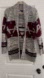 Fair Isle Open Front Oversized Fall Cardigan Sweater Grey Burgundy Black & White