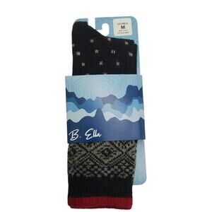 Fair Isle Wool Cashmere Blend Sock Medium Black Red B.Ella Crew INGRID Cozy Gift
