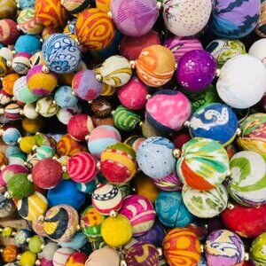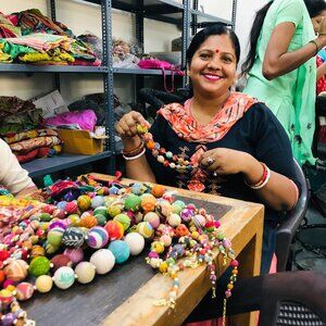Please anticipate some color variations in the unique, handmade piece you receive. The fabric colors in the necklace you receive will be similar to the WorldFinds' stock pictures above; it will not match exactly
