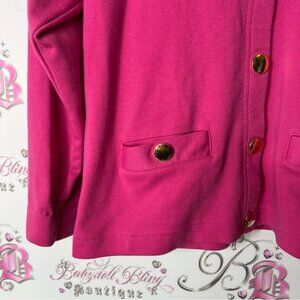 Stylish pink cardigan featuring gold buttons. Perfect for layering. Get ready for an abundance of compliments! ๐ Youโll be celebrated for your exceptional taste! ๐