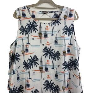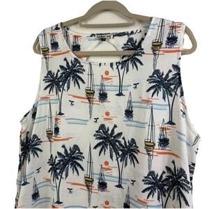 Fairhope Blue White Sunset Sail Shift Midi Dress XXL Coastal Beach Pockets