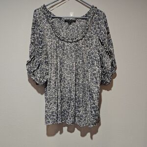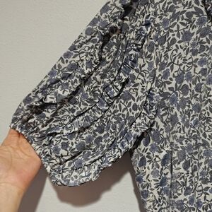 Fairly Peasant Top 2X Blouse Puffer Ruffle Sleeves Floral Zac & Rachel Boxy