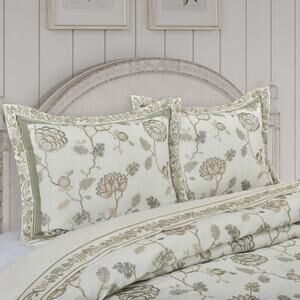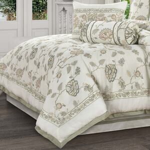 The Fairview Collection 4 Piece Comforter Set Is Beautifully Designed, Combining A Lovely Engineered Leaf Embroidery With Layers Of Sage Green And Natural Colors Throughout The Leaves And Vines. The Embroidery Design Sits On Top Of A Textured White Base Fabric. The Set Includes 2 Pillow Shams That Are Constructed With Coordinating Embroidery And Finished With A Textured Flange. Also Included Is A Tailored Bedskirt With A Split-Corner 15 Inch Drop. Add The Fairview Collection Accessories And Window Treatments To Complete The Look.