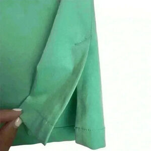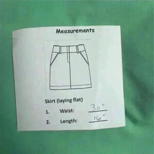The Fairway Fox skort is a women's mini skort in size 4, featuring a solid green color and gold-tone hardware accents. Made from a blend of Coolmax, Lycra, Nylon, and Spandex, it offers a comfortable knit fabric with a pull-on closure and pockets. Suitable for casual occasions, this skort can be worn in all seasons. It is machine washable and manufactured in the USA. The skort is pre-owned. Keywords: Fairway Fox, skort, mini, size 4, green, women's clothing, casual wear, knit fabric, pockets, pull-on, pre-owned. Minor fading on back shown in last two pictures.