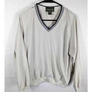 Fairway Golf Collection Windbreaker Pullover Jacket Mens M Beige V-Neck Retro