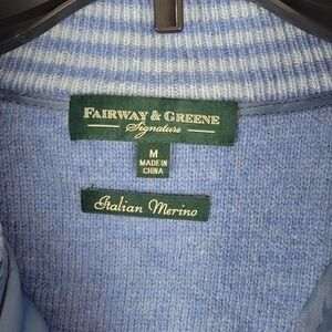 Fairway & Greene 1/4 Zip Blue Argyle Italian Merino Wool Pullover Sweater Sz M.