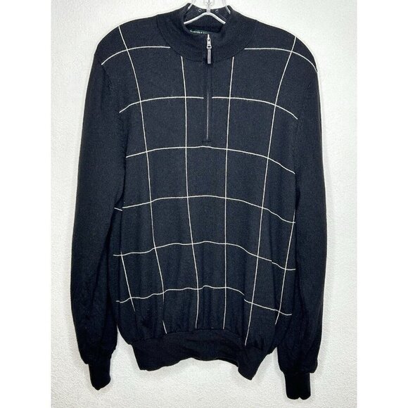 Fairway & Greene 1/4 Zip Merino Wool Sweater Mens Medium Zurich Black White Grid Golf Quarter Zip Sweater