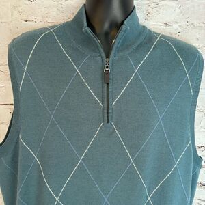 Fairway Greene Italian Merino Sweater Golf Vest Lined Zip Mock Neck Argyle L