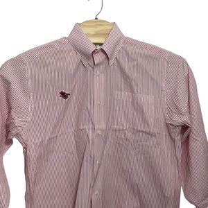 Fairway & Greene Medium Cotton Button Up Red White Stripe Pocket