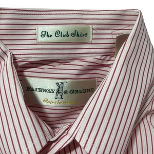 For Sale is this: Fairway & Greene Medium Cotton Button Up Red White Stripe Pocket