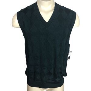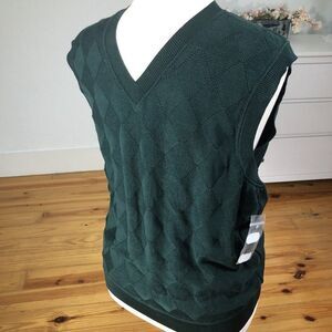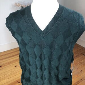 Fairway & Greene Bottle Green sleeveless V neck golf sweater. Pima cotton in diamond/argyle pattern. Soft and bright. Brand new with tags. Men's large in bottle green. No flaws. **all measurements are approximate and are done while laid flat**