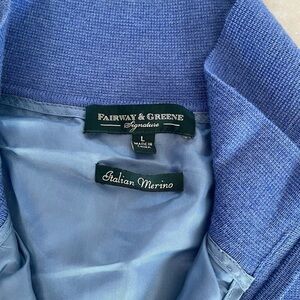 Fairway & Greene Signature Italian Merino Blue 1/4 Zip Lined Pullover SZ L -cool. Super lined merino 1/4 zip pullover. No rips or stains. Super lined sweater. Classic. Great golf gear. Ready for the course. Excellent condition Offers considered