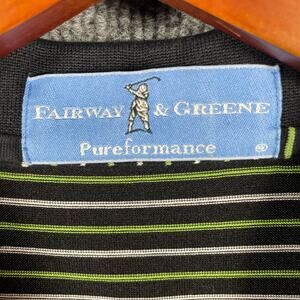Fairway & Greene Pureformance Polo Shirt Men's Medium Black/Green Striped