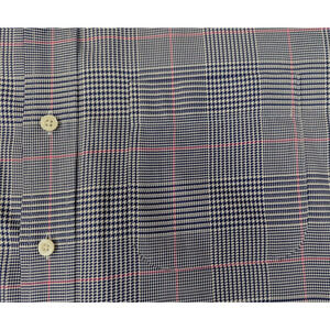 size L, signature shirt, buttons up the front, long sleeves, 1 chest pocket, 100% cotton, blue, white and pink in color.