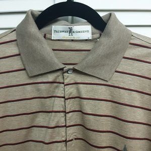 Fairway & Greene Tan/Red/Black Short Sleeve Striped Golf Shirt Large