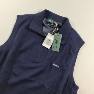 Fairway & Greene The Natural Sweater Vest Mens Small Navy Merino Wool Windstoppr