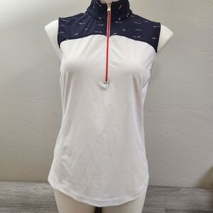 Fairway & Greene White Top M Golfing Zip Polo Collar Neck Athletic Swim Pattern