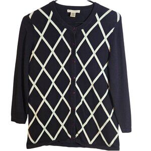 Fairway & Greene Women’s Argyle M Pima Cotton Cardigan Black Minimalist Retro