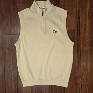 Fairway and Greene 1/4 Zip Pullover Golf Vest 100% Pima Cotton Men's Medium. Gently used in a pale yellow color. Meaurements shown in inches and are for pit to pit and length (shoulder to hem).