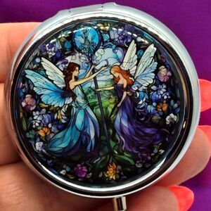 Fairy Angel NEW Pill Box Medicine Mini Tin Case Mirrored Travel Purse Size Blue