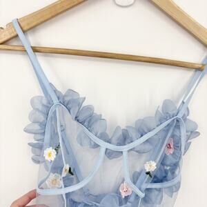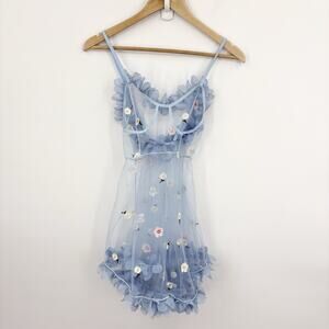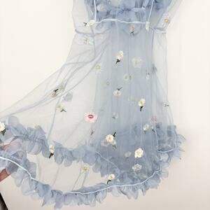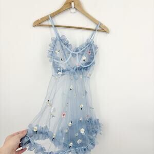 Fairy Babydoll Mesh Slip Dress Women Medium Sheer Pastel Cottage Embroidered Y2K