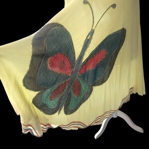 Fairy Butterfly Dress Free Size Yellow Rayon Boho A-line Flowy Festival Beaded