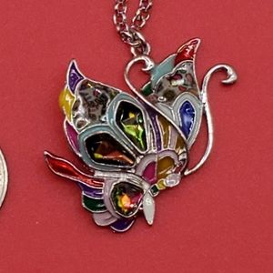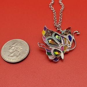 Sweet new Fairy Butterfly Enamel Alloy Necklace in multicolor and rhinestone. Well made chain is included.