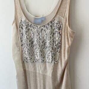 Fairy Coquette Lace Mesh Layered Tank Top Beige Cream Large Romantic Y2K