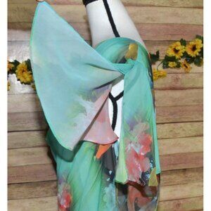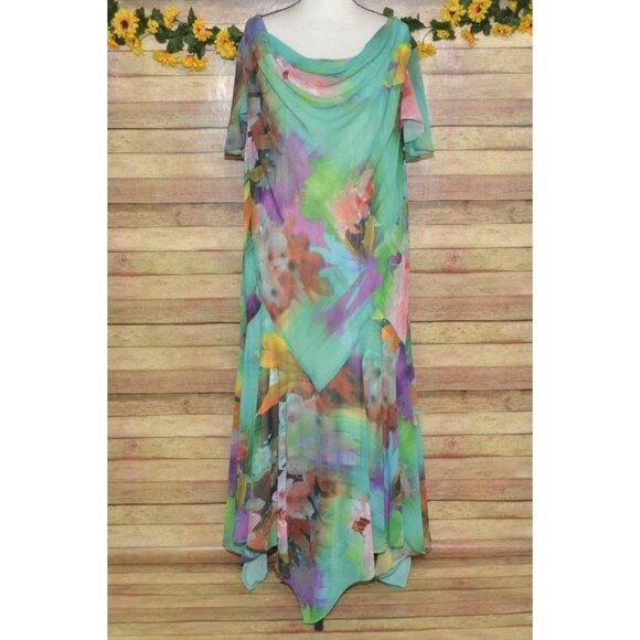 Fairy Core Pastel Floral Midi Dress 20W Scoop Neck Flutter Sleeve Asymmetrical