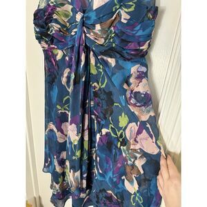 This Donna Ricco dress in size 12 features a fairy floral design with an empire waist, perfect for a romantic and feminine look. The sleeveless knee-length dress is ideal for spring occasions such as weddings, parties, or formal events. The chic and classic style is accentuated by the multicolor flower theme, making it a beautiful and elegant choice.