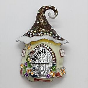 Fairy Elf House Brooch Believe Door Rhinestones & Dripping Oil Finish Forest