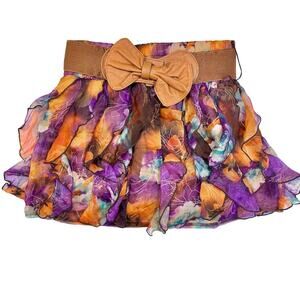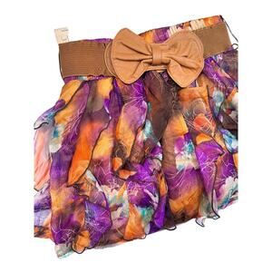 Fairy Flutter Skirt Medium Earthy Whimsical Purple Orange Floral Size Medium Large Bow Belt