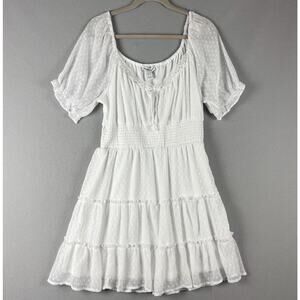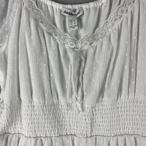 Charlotte Russe Fairy Lace Tiered Dress Womens XL White Smocked Sheer Milkmaid Coquette Boho