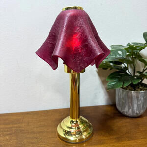 Fairy Light Partylite Cranberry Corroso Art Glass Tealight Lamp Brass 11.5"