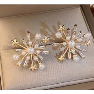 "Fairy Night" Pearl Stars Gold Earrings