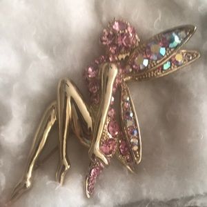 Absolutely Stunning Fairy Pin! Gold with pink crystals. One of a kind.