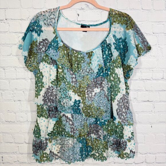 Fairy Ruffle Blouse Women Plus Size 2X Grunge Artsy Retro Layered Stretch Top
