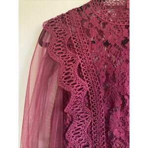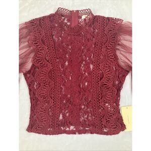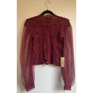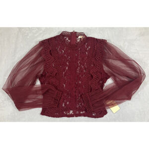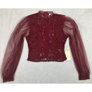Fairy Women's Whimsy Sheer Lace Romantic Size Medium Blouse Red NWT Zip-Up Back