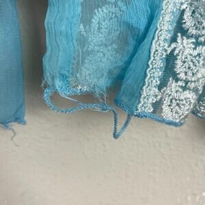 Fairy Y2K Turquoise Sheer Chiffon Lace Sequin Top XS/S Square Neck Peplum Ethereal