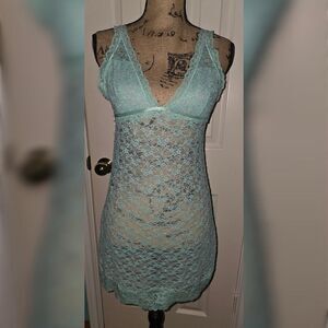 🧚♀️Fairycore Aqua Lace Lingerie Mini Slip Dress Open Back Large ✨️