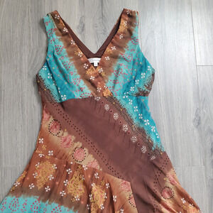 Y2K Flowy Dress 12 Whimsy Goth Fairy Boho Hippie Asymmetrical Sleeveless V neck earth witchy